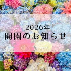 | 開園日 | 4月29日 (水)~ 7月31日 (木) | 定休日なし (9時~17時) |