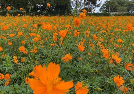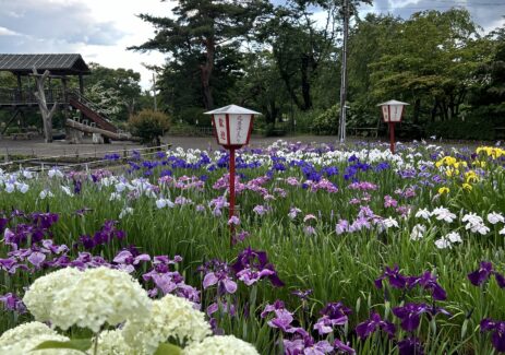 園内の縁どり、1区画に植え付けられているアジサイは7月中旬から8月中旬ごろまで楽しめます。
